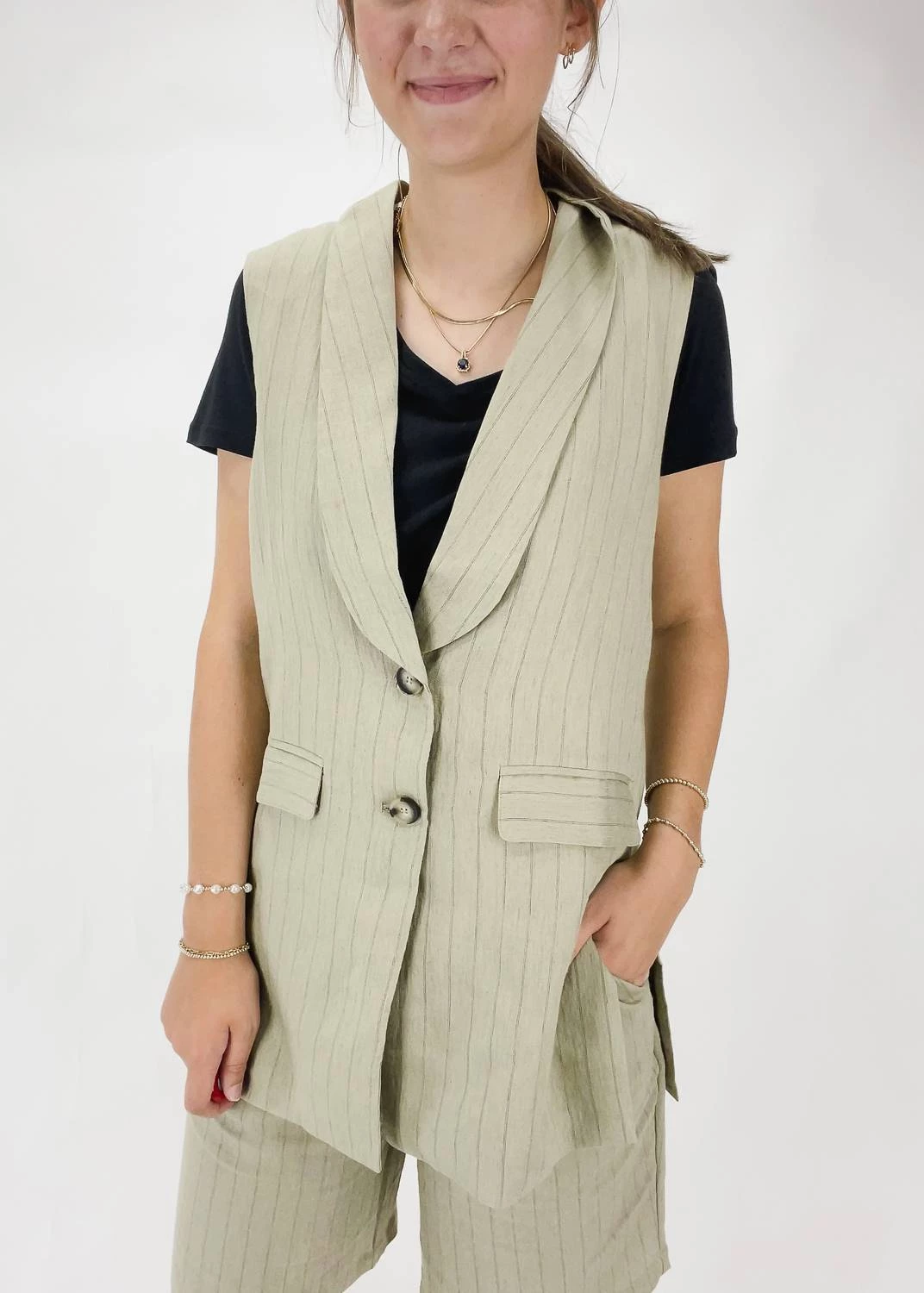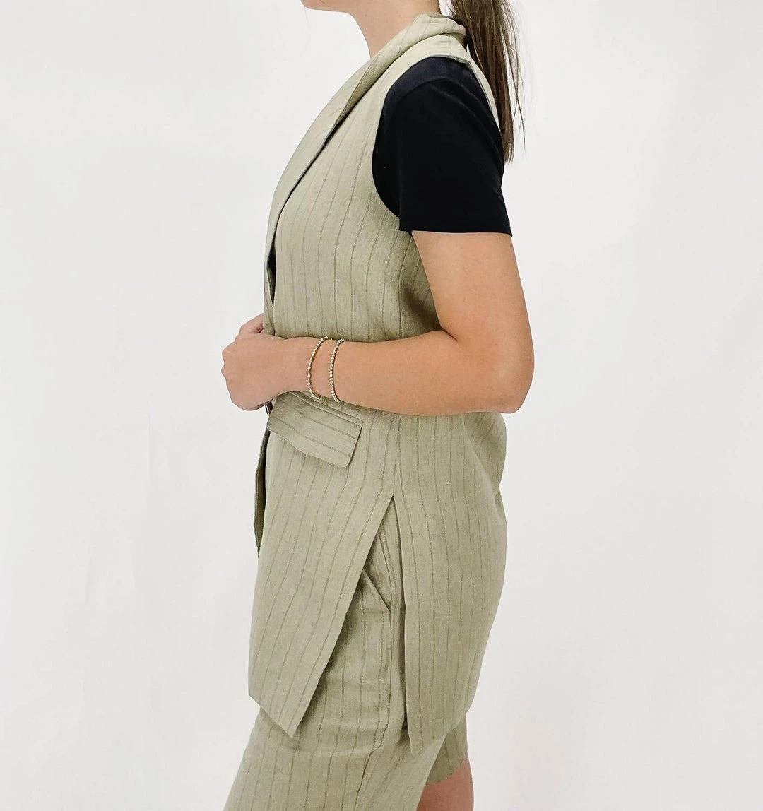 DetailsSide SlitStriped Shawl CollarDouble Button Long Vest