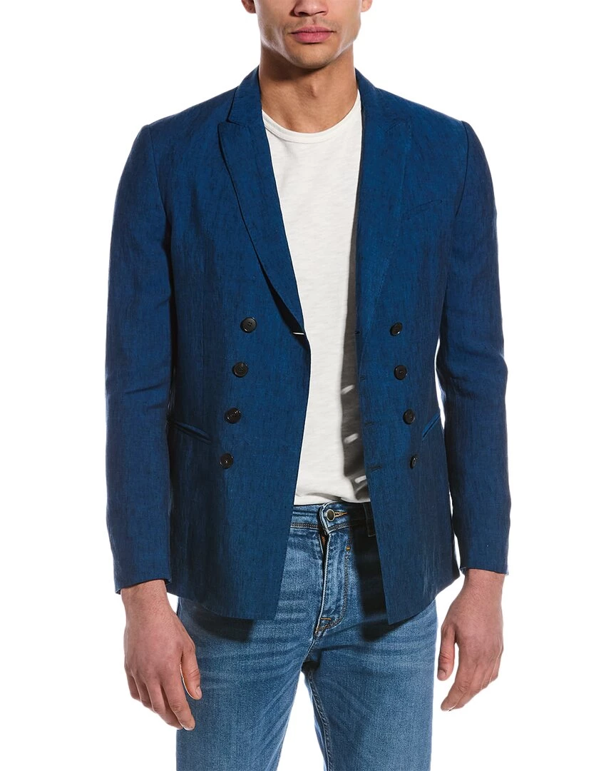 John Varvatos Slim Fit Double-Breasted Suede-Trim Linen Blazer – men